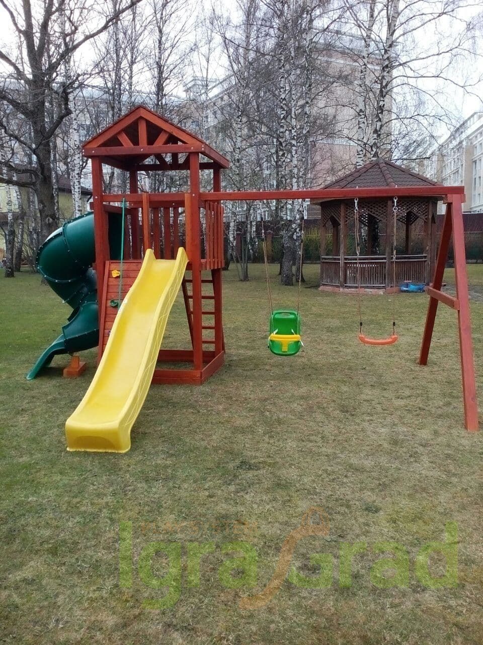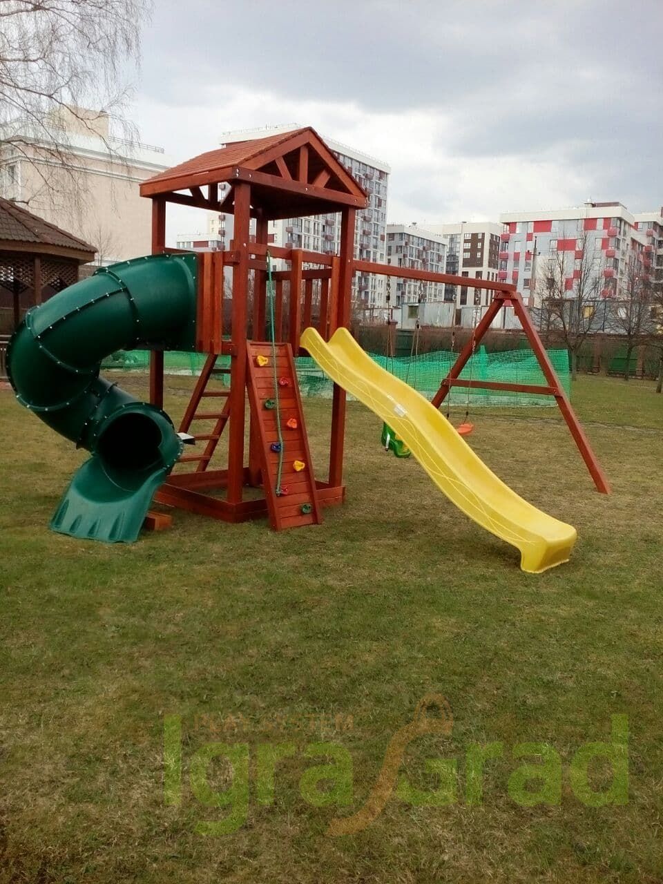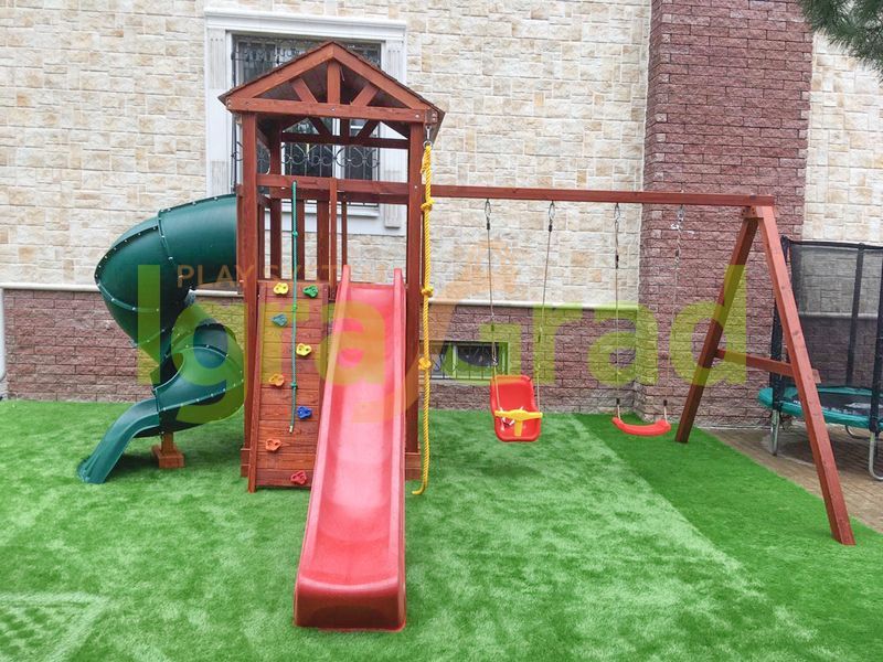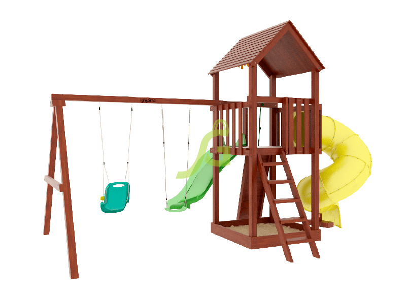 Обращаем Ваше внимание, что цвет установленной детской площадки может отличаться от представленных изображений на сайте. Специфика окраски нетоксичными пропитками допускает отклонения в цветовой гамме отгружаемых изделий вследствие различного цвета натурального природного сырья и естественных компонентов, используемых для производства площадок.