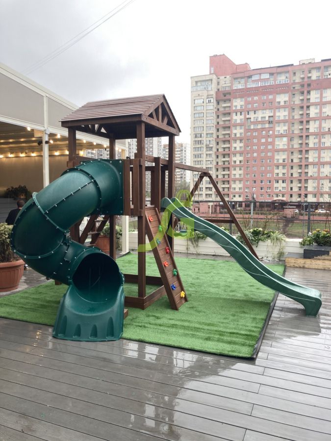 Комплектация детской площадки с винтовой горкой-трубой: