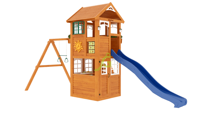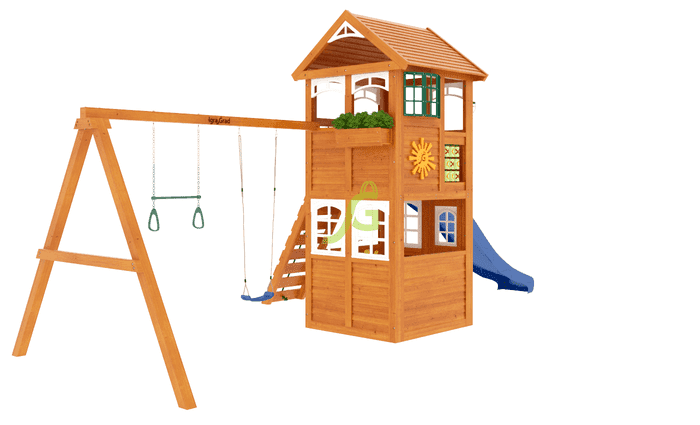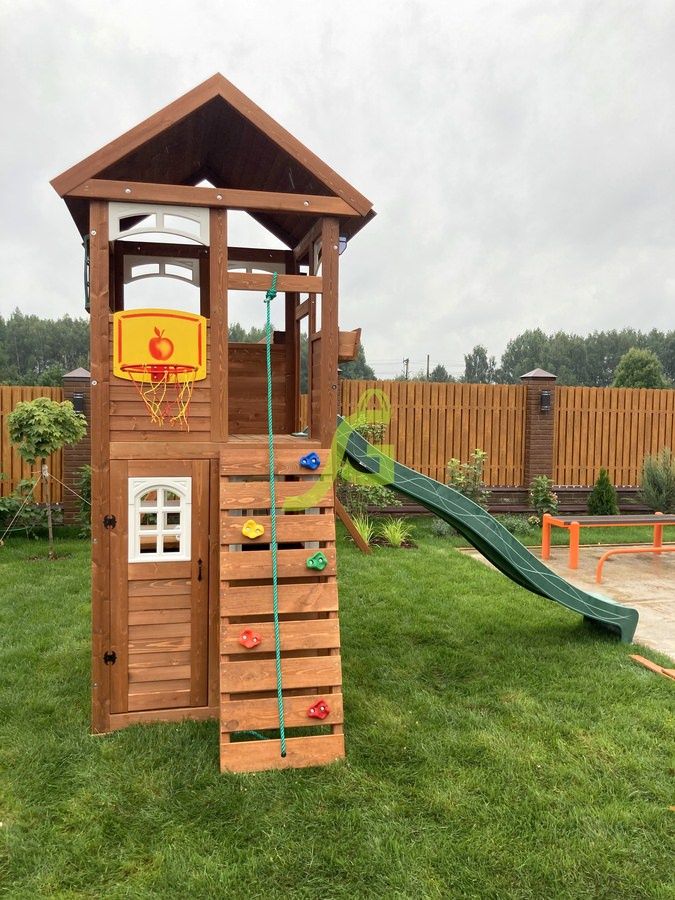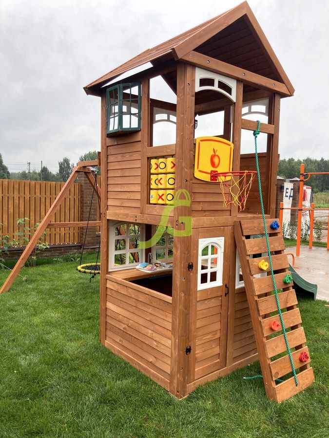 - - Закрытый двухуровневый игровой домик с дверью, деревянной крышей;