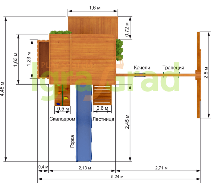 - - Закрытый двухуровневый игровой домик с дверью и деревянной крышей;