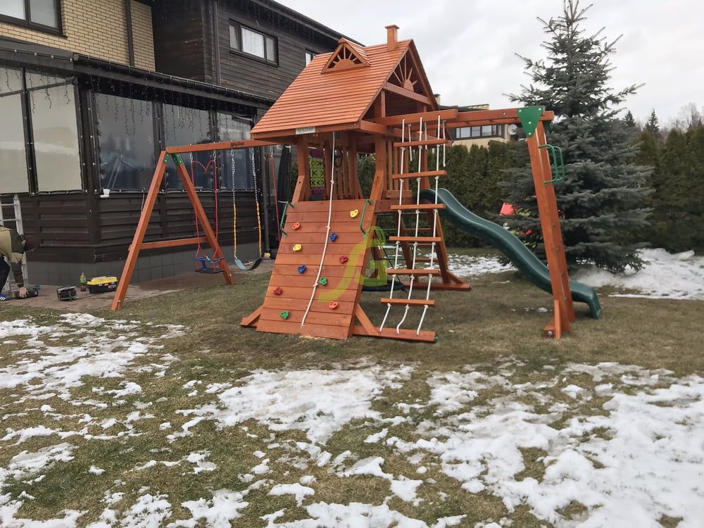 15% от общей стоимости площадкиОбращаем Ваше внимание, что цвет установленной детской площадки может отличаться от представленных изображений на сайте. Специфика окраски нетоксичными пропитками допускает отклонения в цветовой гамме отгружаемых изделий вследствие различного цвета натурального природного сырья и естественных компонентов, используемых для производства площадок.