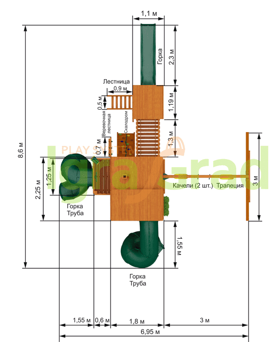 Габариты игрового комплекса для детей составляют:
