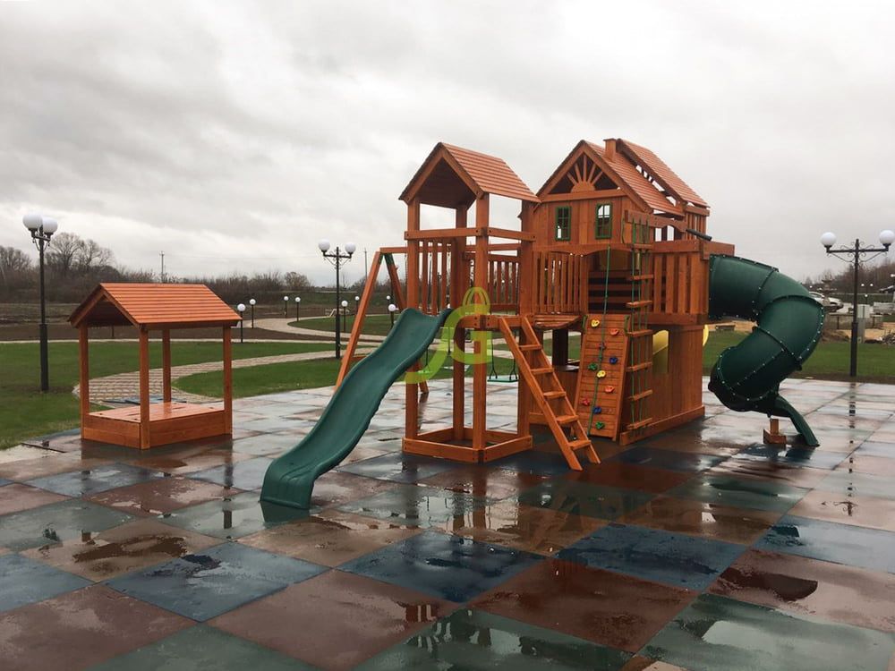 Обращаем Ваше внимание, что цвет установленной детской площадки может отличаться от представленных изображений на сайте. Специфика окраски нетоксичными пропитками допускает отклонения в цветовой гамме отгружаемых изделий вследствие различного цвета натурального природного сырья и естественных компонентов, используемых для производства площадок.