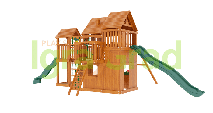Украсьте дачный участок и удивите своего малыша уникальной детской площадкой для дачи «Великан 2» (Макси). Большой, красивый домик современного оформления напоминает интересный лабиринт. Ведь домик с двух сторон дополняется разноуровневыми башенками, между которыми имеются небольшие коридорчики.