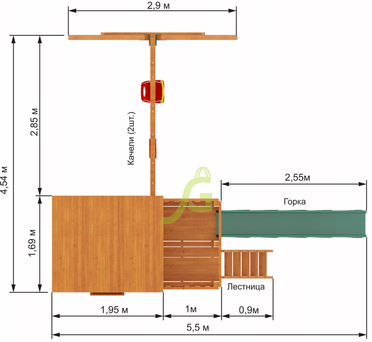 Обращаем Ваше внимание, что цвет установленной детской площадки может отличаться от представленных изображений на сайте. Специфика окраски нетоксичными пропитками допускает отклонения в цветовой гамме отгружаемых изделий вследствие различного цвета натурального природного сырья и естественных компонентов, используемых для производства площадок.