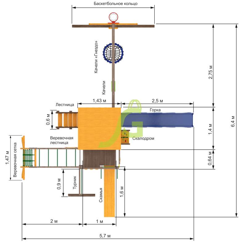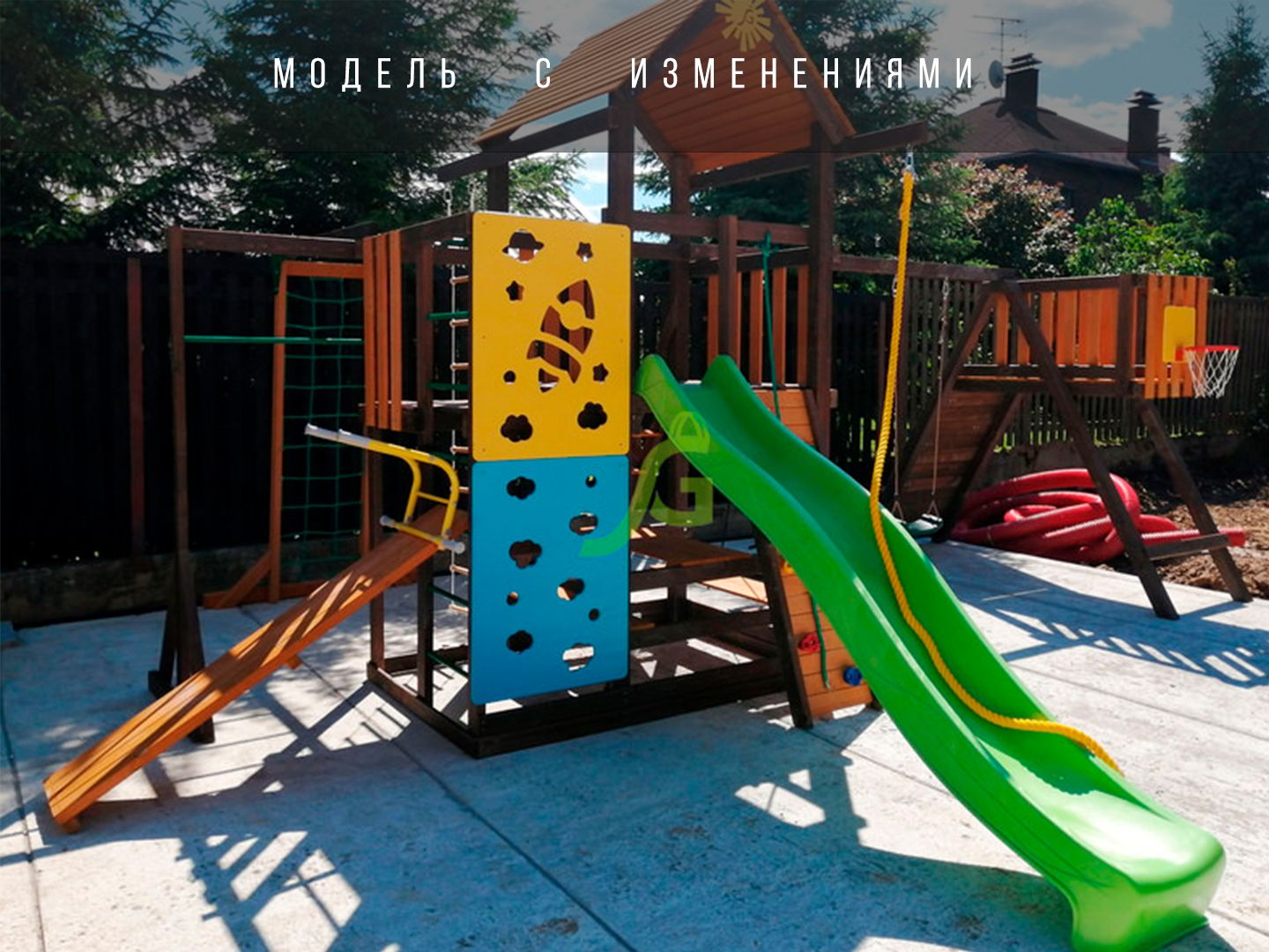 Обращаем Ваше внимание, что цвет установленной детской площадки может отличаться от представленных изображений на сайте. Специфика окраски нетоксичными пропитками допускает отклонения в цветовой гамме отгружаемых изделий вследствие различного цвета натурального природного сырья и естественных компонентов, используемых для производства площадок.