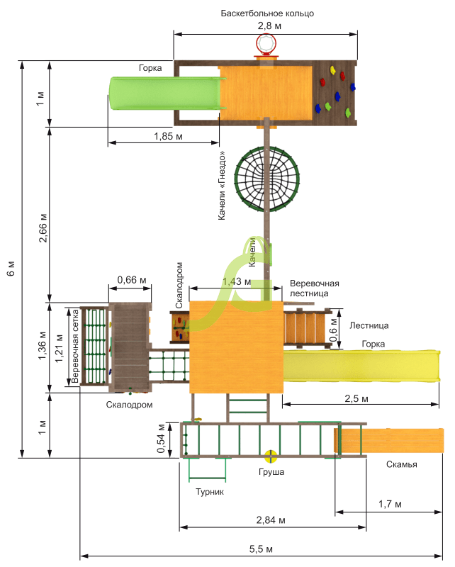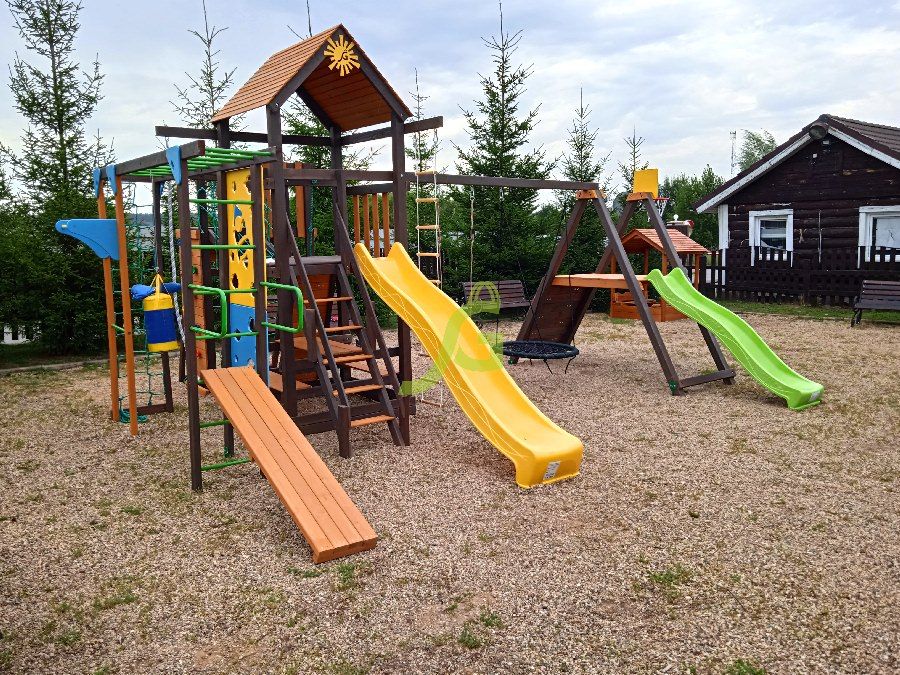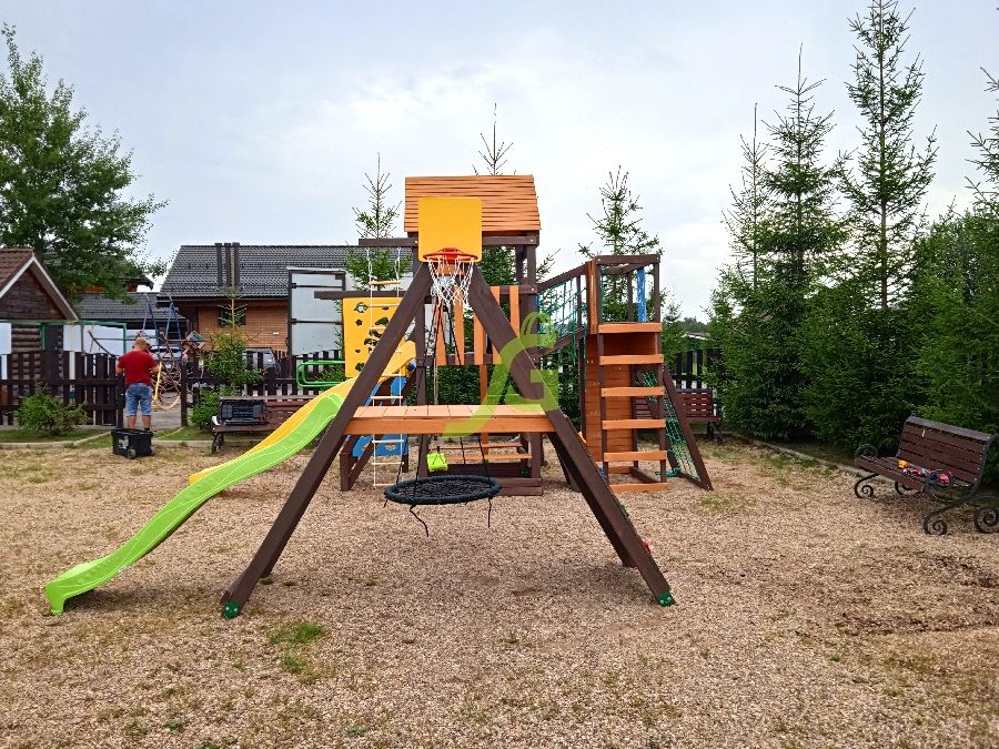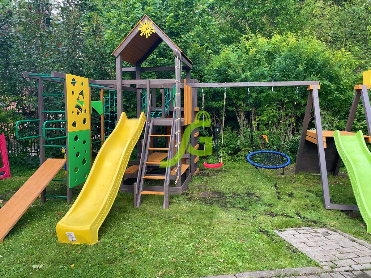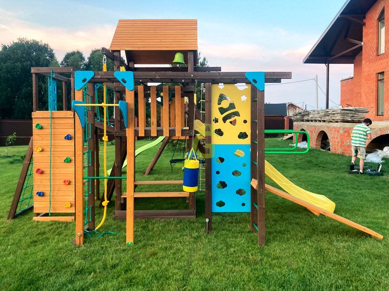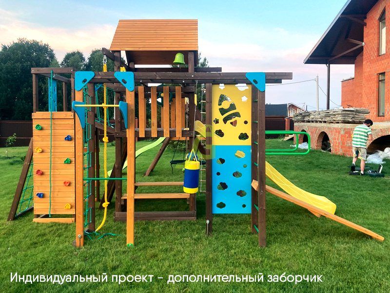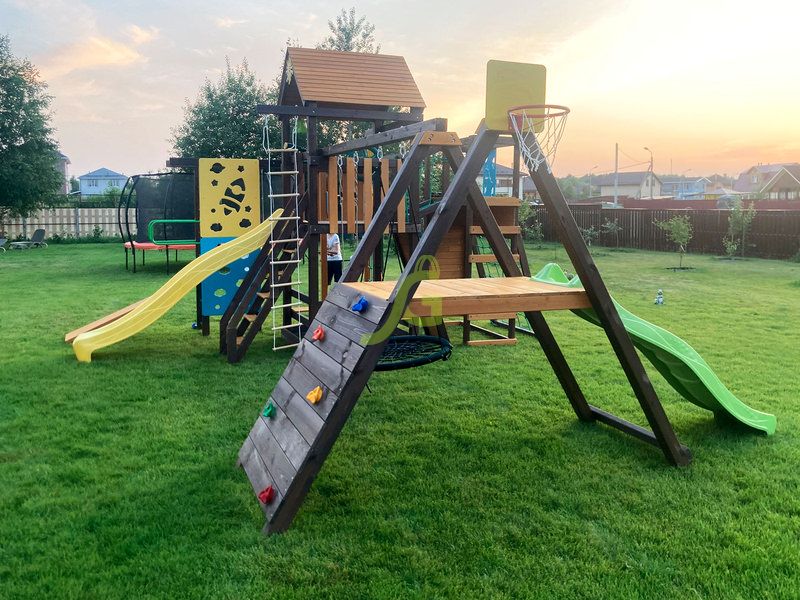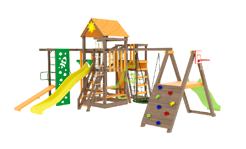 Обращаем Ваше внимание, что цвет установленной детской площадки может отличаться от представленных изображений на сайте. Специфика окраски нетоксичными пропитками допускает отклонения в цветовой гамме отгружаемых изделий вследствие различного цвета натурального природного сырья и естественных компонентов, используемых для производства площадок.