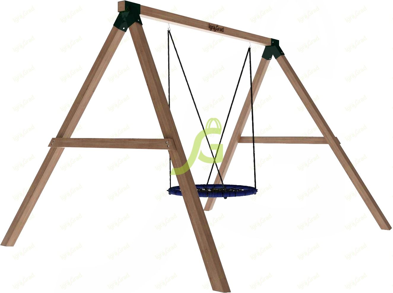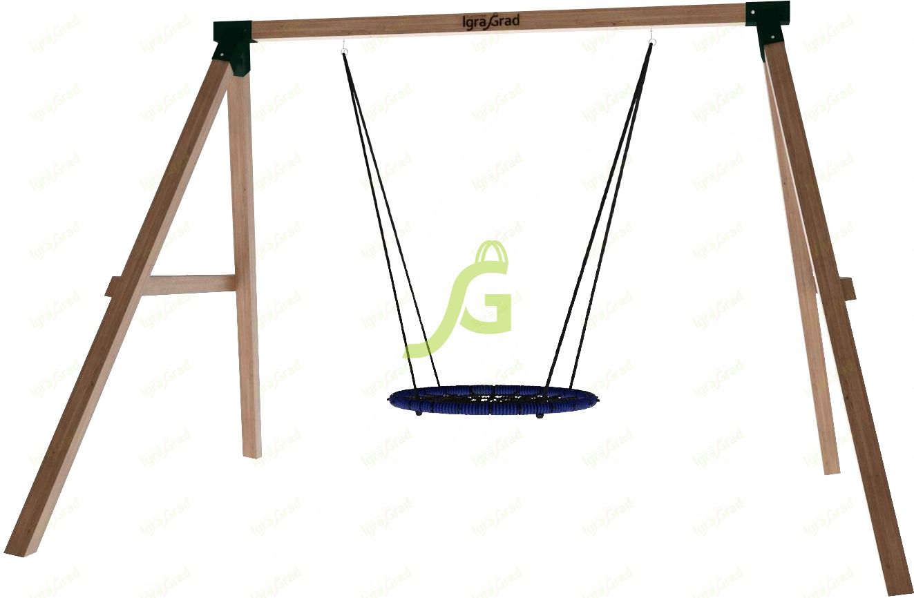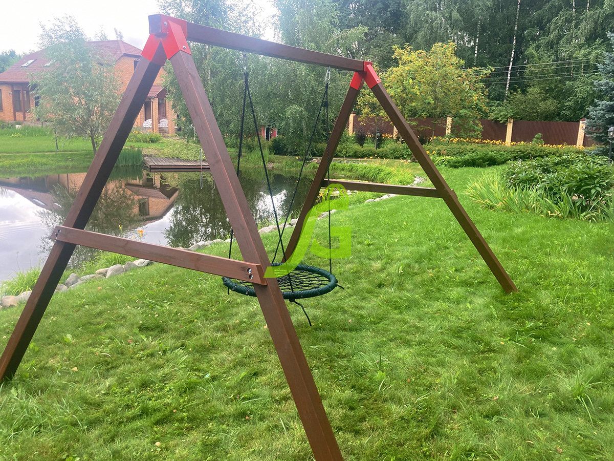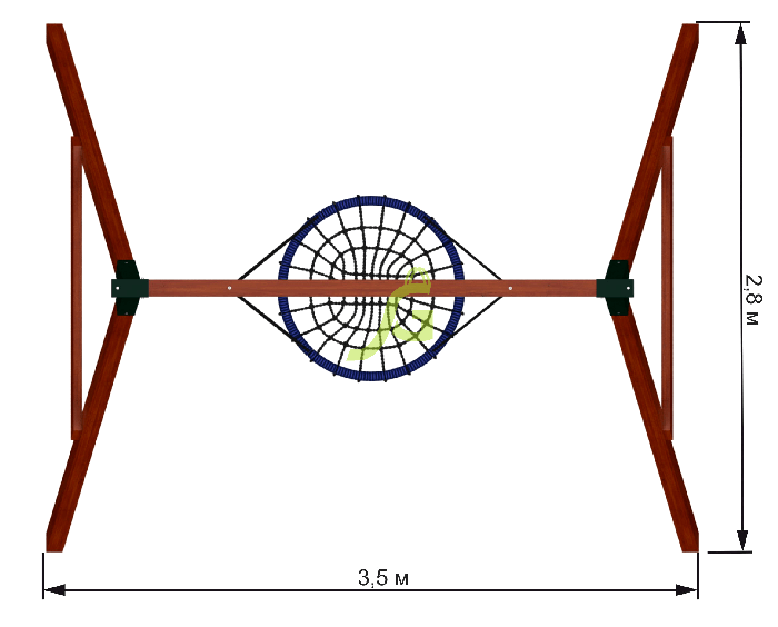 Сооружение состоит из длинной мощной перекладины, крепящейся к устойчивым балкам с обеих сторон. Для большей надёжности к боковым балкам фиксируются перекладины. По центру перекладины располагается удобное сиденье гнездо-паутинка, крепящееся с помощью оцинкованных болтовых соединений, утапливаемых внутрь конструкции.