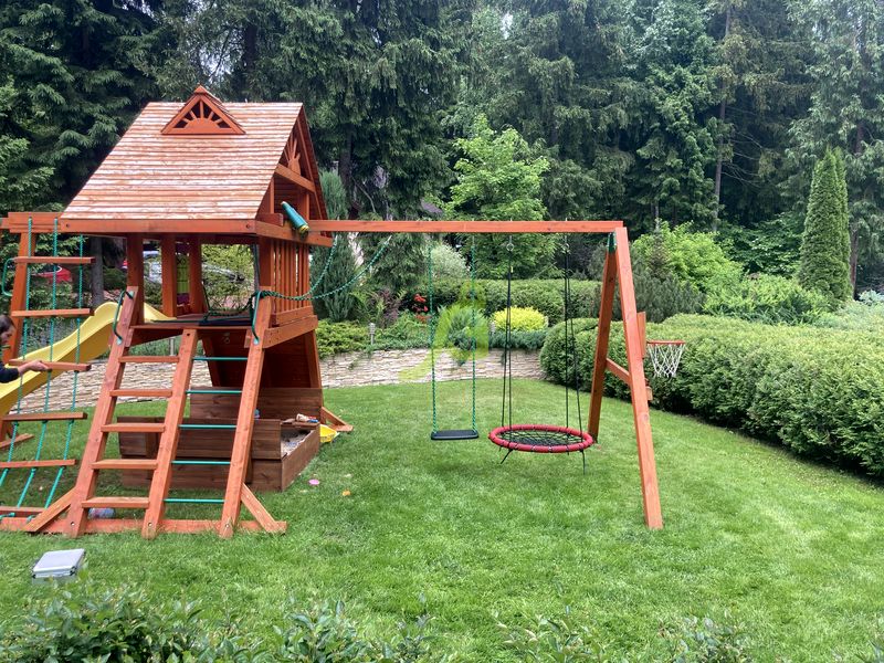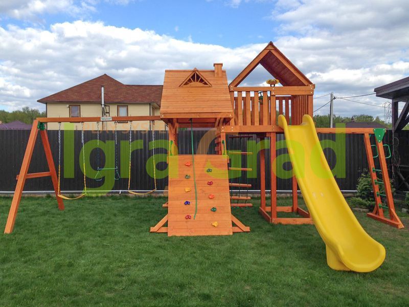 Мы предлагаем выгодное для Вас предложение – детскую площадку из дерева «Крепость Фани Deluxe» +, на которой дети будут увлечённо играть, физически развиваться, общаться, адаптируясь в обществе. Игровой комплекс без труда устанавливается на огороженной территории, украшая своим дизайном приусадебный участок. Вмещается пятеро детей.