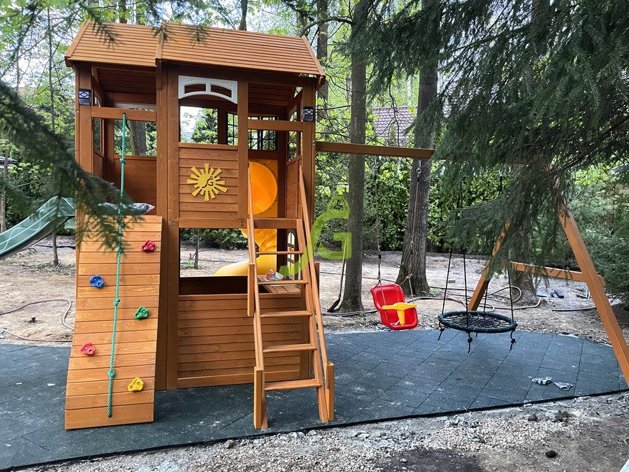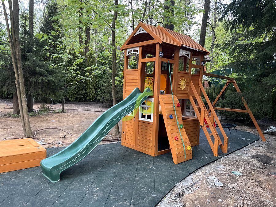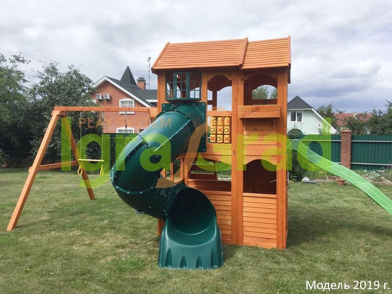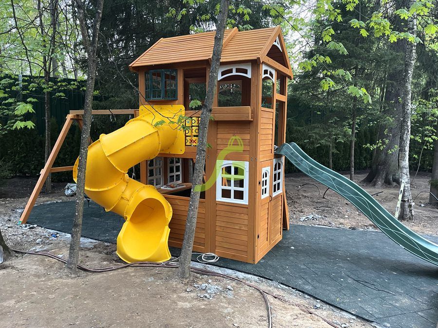 - - Закрытый двухуровневый игровой домик с дверью, деревянной крышей;