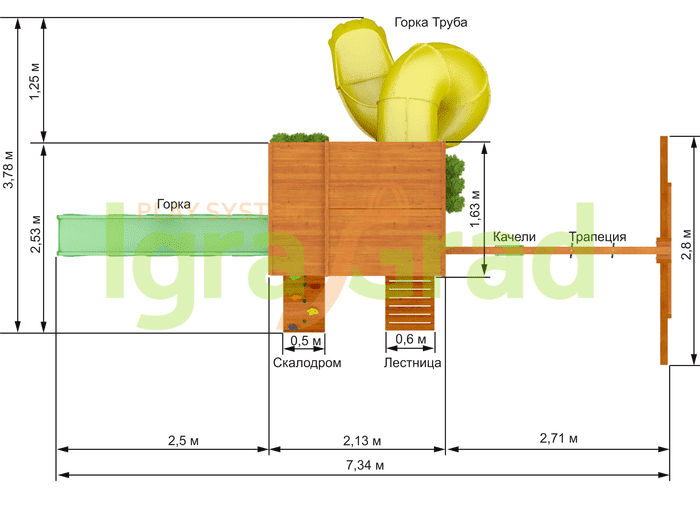 Детская площадка для дачи "Клубный домик 2 с трубой" включает: