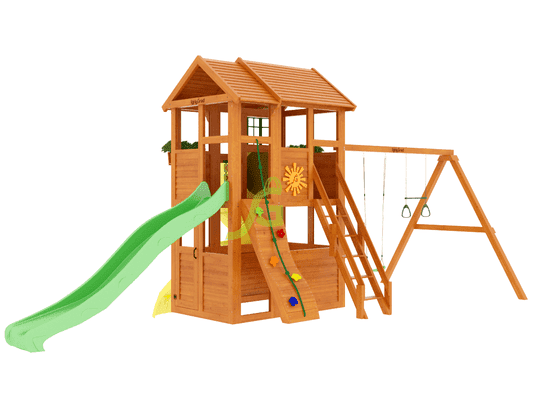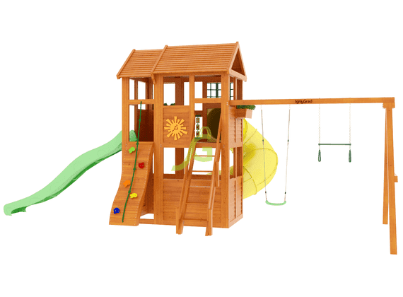 Обращаем Ваше внимание, что цвет установленной детской площадки может отличаться от представленных изображений на сайте. Специфика окраски нетоксичными пропитками допускает отклонения в цветовой гамме отгружаемых изделий вследствие различного цвета натурального природного сырья и естественных компонентов, используемых для производства площадок.