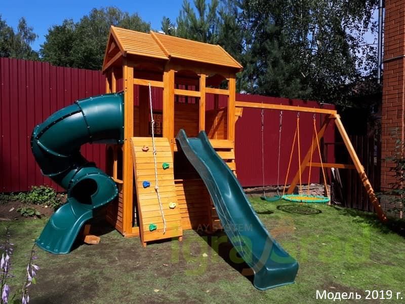 Дача одно из самых прекрасных мест для отдыха всей семьи, особенно для детишек. Ведь свежий воздух, большое пространство, солнышко и зеленая травка станут для вашего малыша прекрасной компанией. А чтобы он не скучал, можно на лужайке установить детскую площадку для дачи «Клубный домик 2 с трубой». Это хорошее решение для тех родителей, которые ценят экологичность, практичность, надежность и долговечность. Площадка изготовлена по всем европейским стандартам, и она не имеет аналогов, так как появилась сравнительно недавно.