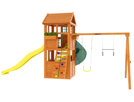 Обращаем Ваше внимание, что цвет установленной детской площадки может отличаться от представленных изображений на сайте. Специфика окраски нетоксичными пропитками допускает отклонения в цветовой гамме отгружаемых изделий вследствие различного цвета натурального природного сырья и естественных компонентов, используемых для производства площадок.