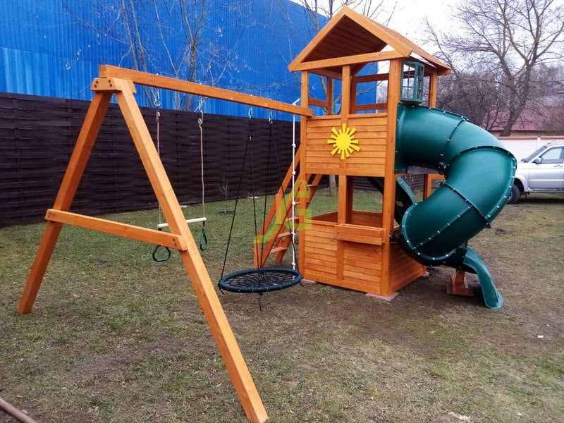 Конструкция разработана с учетом самых высоких требований по экологичности и безопасности игровых площадок. Крепления и комплектующие – от европейских производителей, что обеспечивает благонадежность и прочность сооружений.