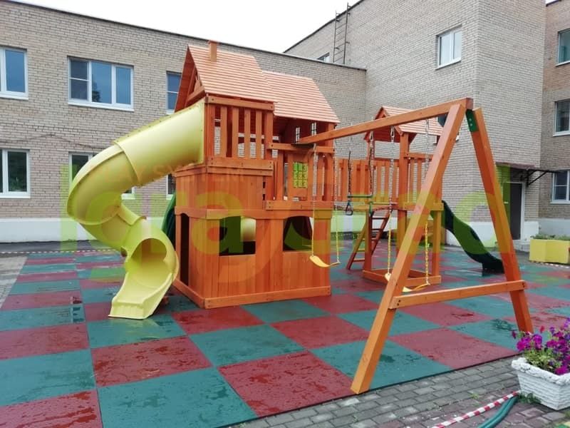 Детям предлагается покачаться и на качелях, воспользоваться трапецией с кольцами, чтобы улучшить физическое состояние. Детская площадка из дерева улучшает здоровье ребёнка, укрепляет иммунную систему. Увлечённо играя, ребёнок дышит всем телом, что благотворно влияет на развитие всех внутренних органов и головного мозга.
