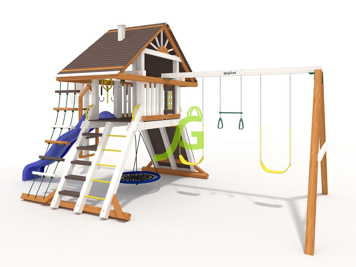 При заказе услуги сборки - доставка до 50 км от МКАД осуществляется бесплатноОбращаем Ваше внимание, что цвет установленной детской площадки может отличаться от представленных изображений на сайте. Специфика окраски нетоксичными пропитками допускает отклонения в цветовой гамме отгружаемых изделий вследствие различного цвета натурального природного сырья и естественных компонентов, используемых для производства площадок.