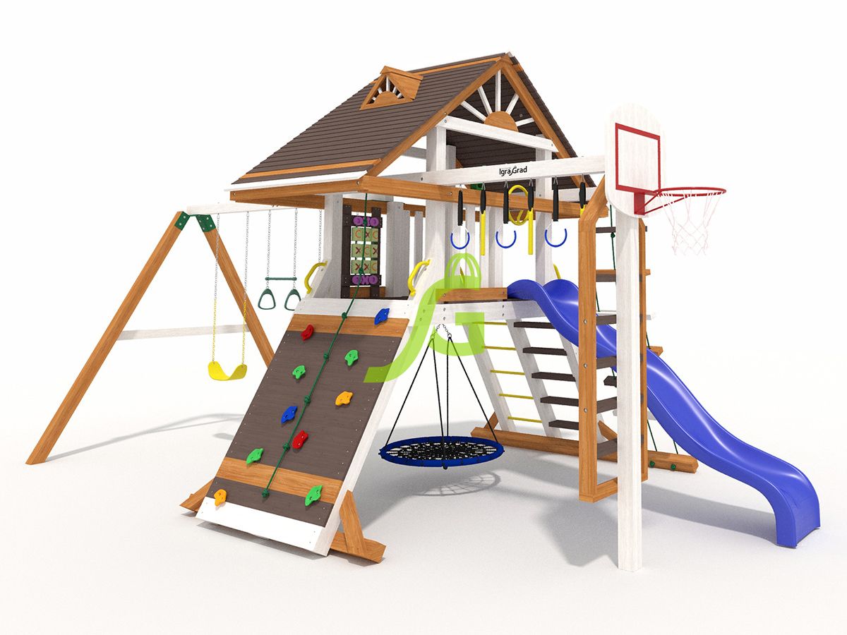 Обращаем Ваше внимание, что цвет установленной детской площадки может отличаться от представленных изображений на сайте. Специфика окраски нетоксичными пропитками допускает отклонения в цветовой гамме отгружаемых изделий вследствие различного цвета натурального природного сырья и естественных компонентов, используемых для производства площадок.