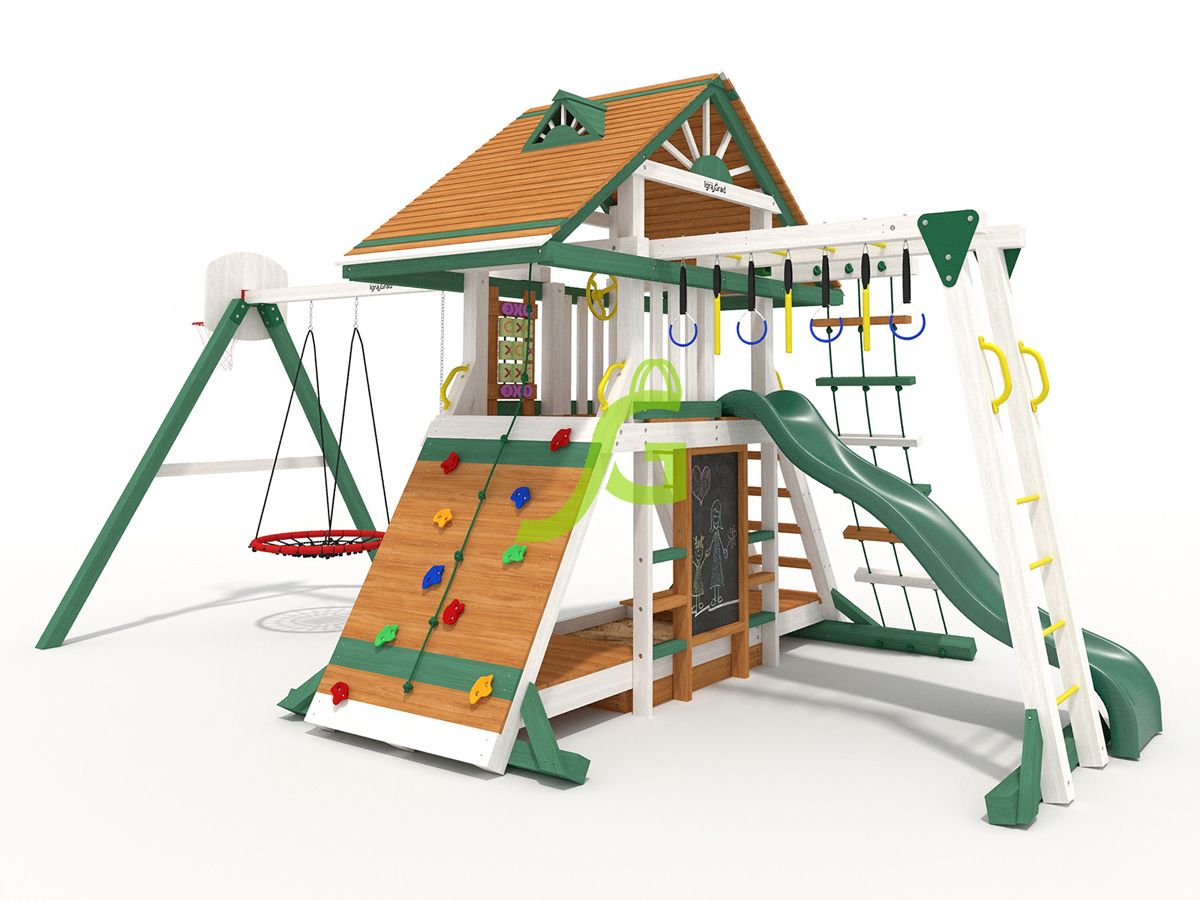 Обращаем Ваше внимание, что цвет установленной детской площадки может отличаться от представленных изображений на сайте. Специфика окраски нетоксичными пропитками допускает отклонения в цветовой гамме отгружаемых изделий вследствие различного цвета натурального природного сырья и естественных компонентов, используемых для производства площадок.