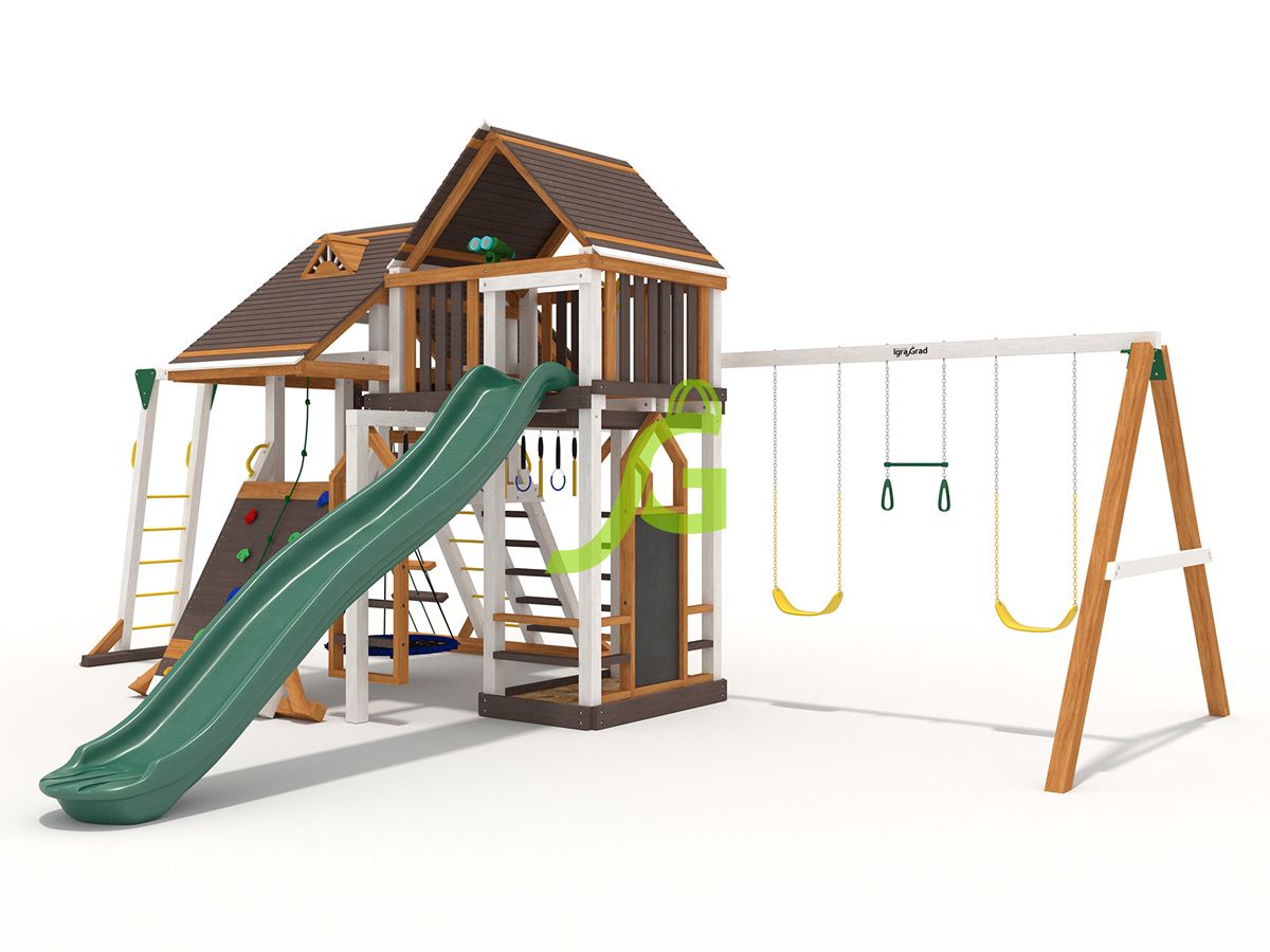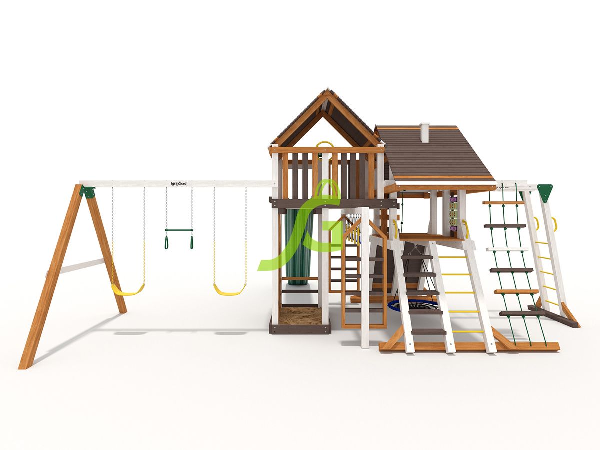Обращаем Ваше внимание, что цвет установленной детской площадки может отличаться от представленных изображений на сайте. Специфика окраски нетоксичными пропитками допускает отклонения в цветовой гамме отгружаемых изделий вследствие различного цвета натурального природного сырья и естественных компонентов, используемых для производства площадок.