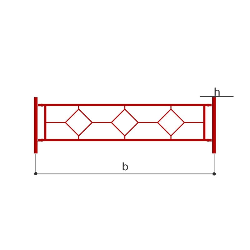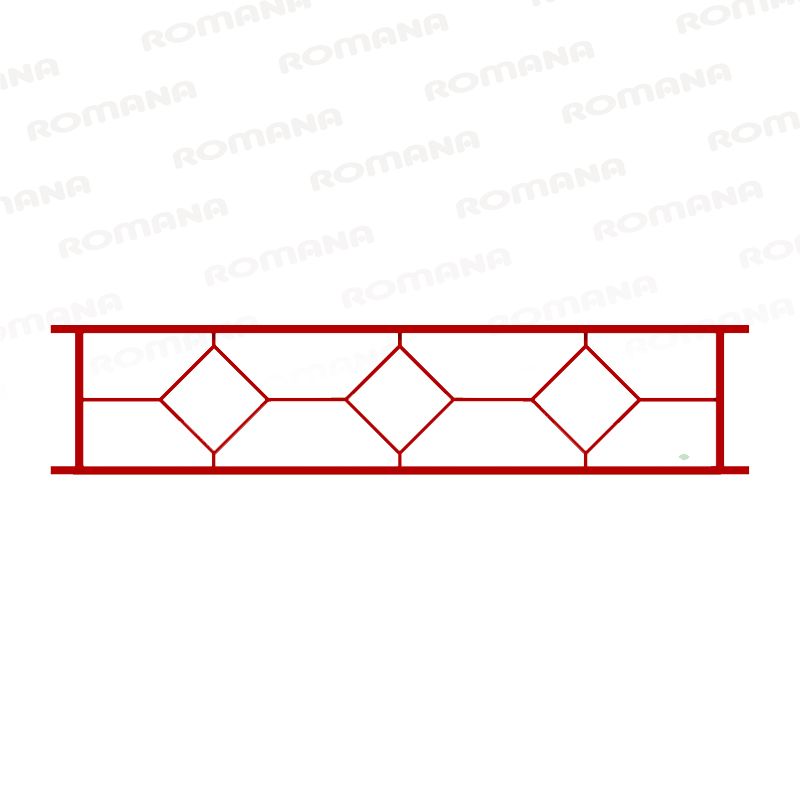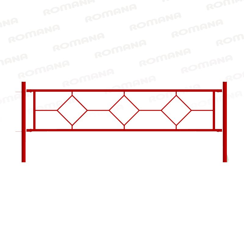 Ограждение металлическое красное с узором в виде трех квадратов для спортивной или детской площадки. Размеры секции 2000 х 500 мм