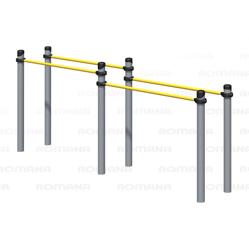 Спортивное оборудование входит в комплекс «Воркаут», наряду с другими спортивными элементами устанавливается на территориях игровых зон, зон отдыха, спортивных площадках для пользователей от 14 лет. Предназначено для доступных занятий физической культурой на свежем воздухе. Изделия могут эксплуатироваться круглогодично. Конструкция состоит из шести попарно установленных стоек, соединенных перекладинами. Между первой и второй парами стоек должны быть закреплены прямые перекладины (балки) на уровне не менее 1300 мм от уровня площадки, между второй и третьей парами стоек должны быть закреплены перекладины на уровне не менее 900 мм от уровня площадки. -