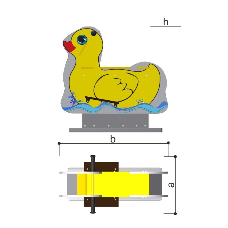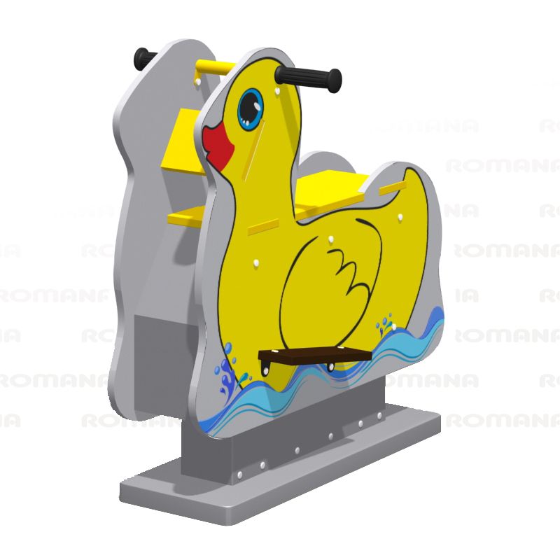Качалка для тематических игр, предназначена для детей в возрасте от 2 лет. На фигурную вставку при помощи УФ-печати нанесено изображение в тематике «уточка». Конструкция качалки предоставляет возможность качаться пользователю по оси «вперед-назад». Изделие приходит в движение за счет переноса веса ребенка - совершения раскачивающих движений «назад-вперед». Платформа обеспечивает плавное легкое качание, без ударов и усилий. -