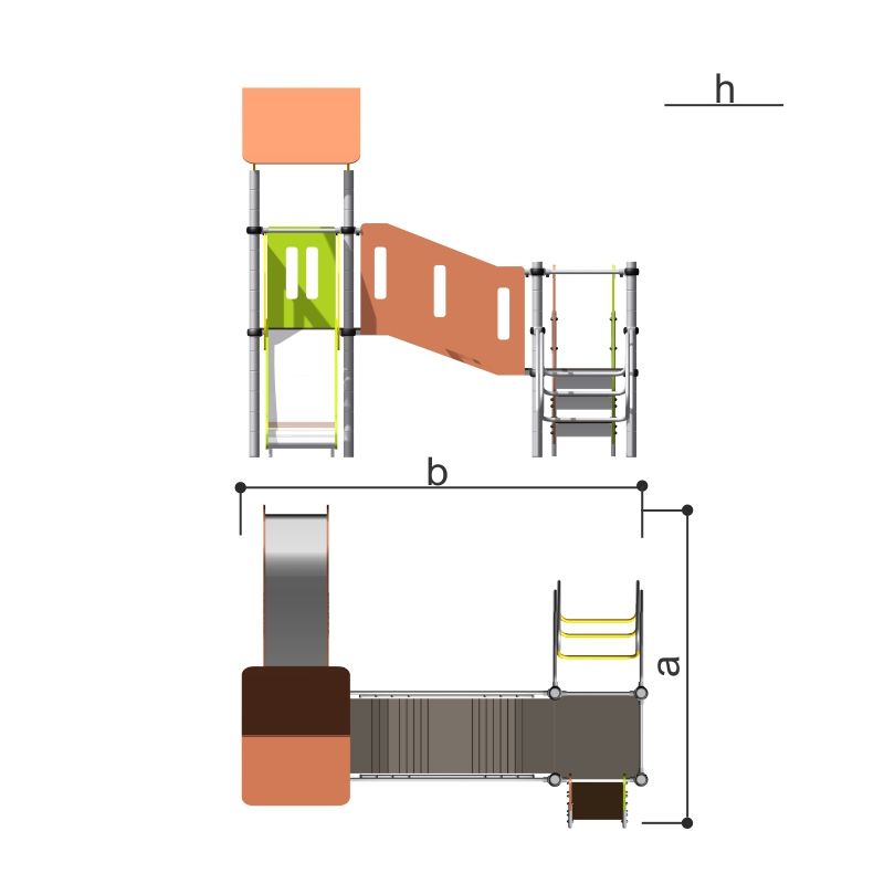 Возрастная группа, лет3-7Высота падения, мм950Высота, ммh=2724Габаритные размеры, ммa=2590, b=2957Гарантия1 годМатериалфанераСерияСерия "104"Цветзеленый/кремовый -