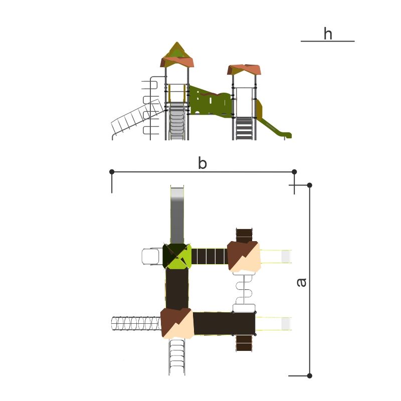 Возрастная группа, лет4-12Высота падения, мм2060Высота, ммh=4123Габаритные размеры, ммa=7197, b=8065Гарантия1 годМатериалфанераСерияСерия "101"Цветзеленый/кремовый -