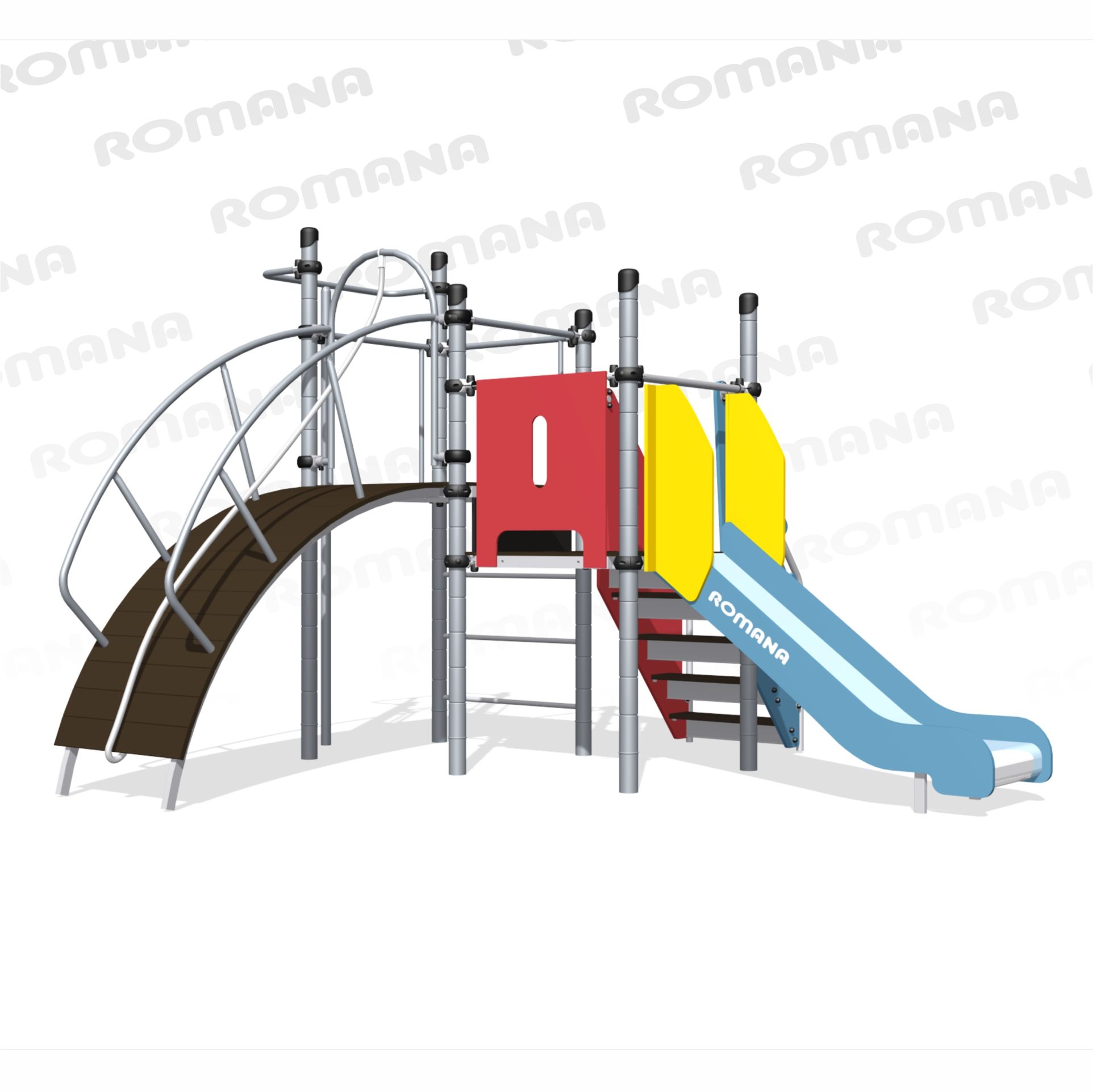 Игровой комплекс для тематических игр и физического развития предназначен для детей в возрасте от 8 лет. Изделие представляет собой сборно-разборную каркасную конструкцию из металлических труб, установленную на забетонированные стойки.