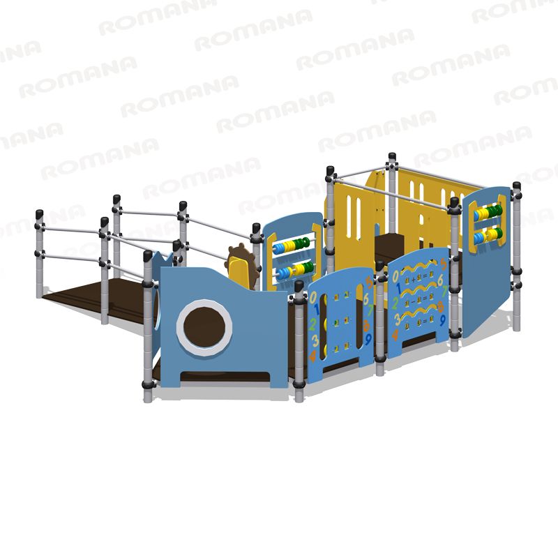 Игровой комплекс представляет собой сборно-разборную конструкцию, выполненную в форме корабля. Комплекс имеет площадки, стоящие на двух уровнях. Верхняя площадка выполнена в виде юта, к ней же крепится горка высотой 650 мм. нижняя площадка находится на высоте 200 мм от поверхности площадки. К нижней площадке подведен скат шириной 1000 мм.