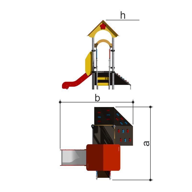 Детская площадка «Romana 104.05.00»- это небольшой домик- горка со скаладромом. Помогает развивать у детей гибкость, ловкость и укреплять мышцы. Подходит для любых площадок. Изделие устанавливается на открытых уличных участках, находящихся под контролем ответственного лица – эксплуатанта. Установка Изделия должна проводится на ровной площадке, свободной от насаждений. В зоне приземления должно быть ударопоглощающее покрытие (песок, древесные опилки) минимальной толщиной 300 мм. -