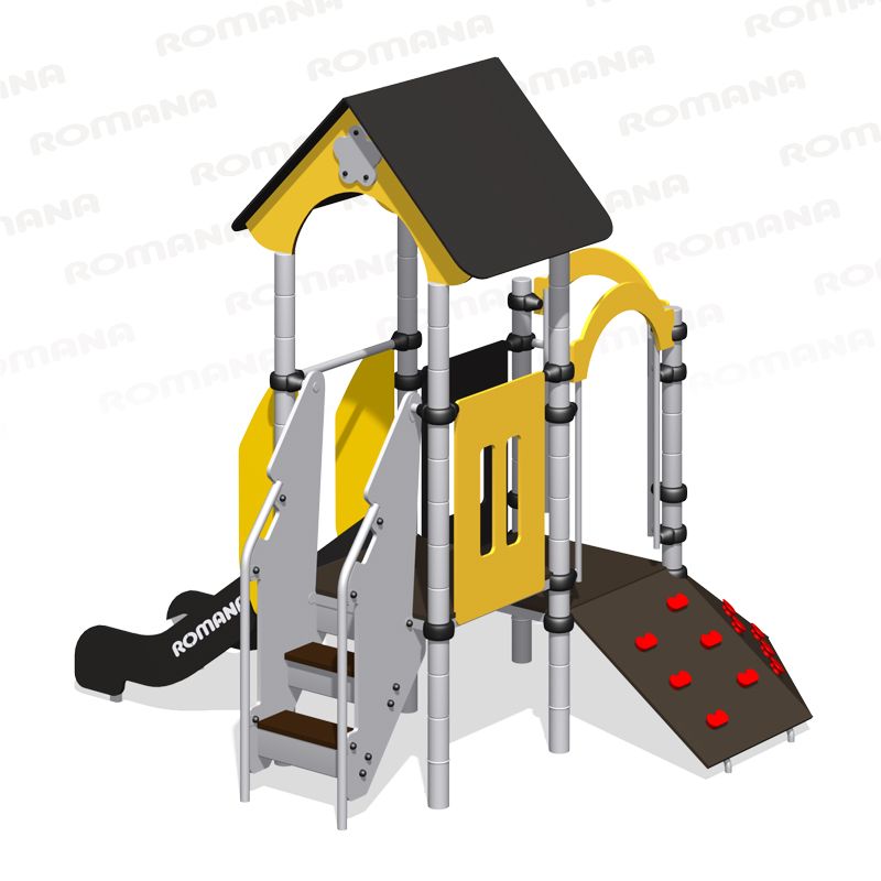 Детская площадка «Romana 104.05.00»- это небольшой домик- горка со скаладромом. Помогает развивать у детей гибкость, ловкость и укреплять мышцы. Подходит для любых площадок.