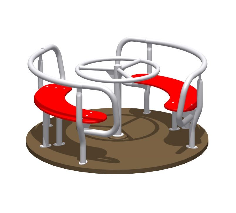 Карусель для детей в возрасте от 3 до 12 лет. Размещается на территориях игровых зон, зон отдыха, спортивных площадках. Выполнена в виде платформы (настил) на узле вращения (шпиль в сборе) с поручнем и сиденьями на настиле. -
