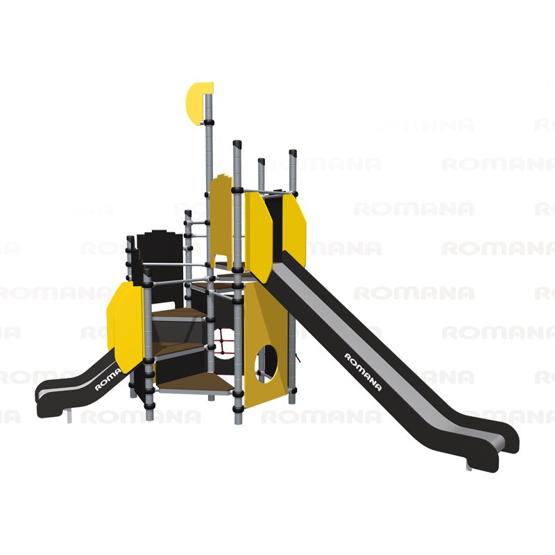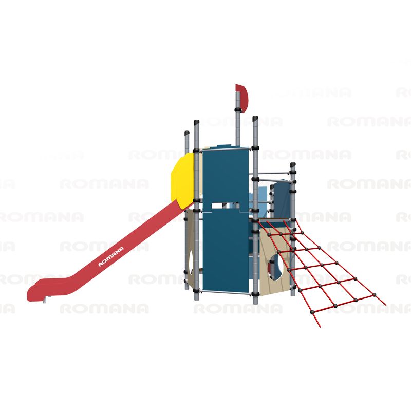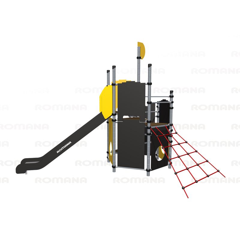 Игровой комплекс для тематических игр и физического развития предназначен для детей в возрасте от 4 лет. Изделие представляет собой сборно-разборную каркасную конструкцию из металлических труб, установленную на забетонированные стойки.