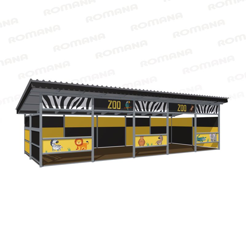 Веранда предназначена для установки на детских игровых площадках или на территории детских садов для проведения игр, занятий и игровых мероприятий с детьми независимо от времени года, так как крыша препятствует попаданию атмосферных осадков внутрь площадки, а также служит защитой от попадания прямых солнечных лучей. Веранда может эксплуатироваться круглогодично. Изделие представляет собой сборно-разборную конструкцию. Сборка производится при помощи резьбовых соединений. Конструктивно веранда состоит из стоек, платформы с настилом, ограждений и крыши. На передние панели нанесены тематические принты, при помощи УФ-печати. -