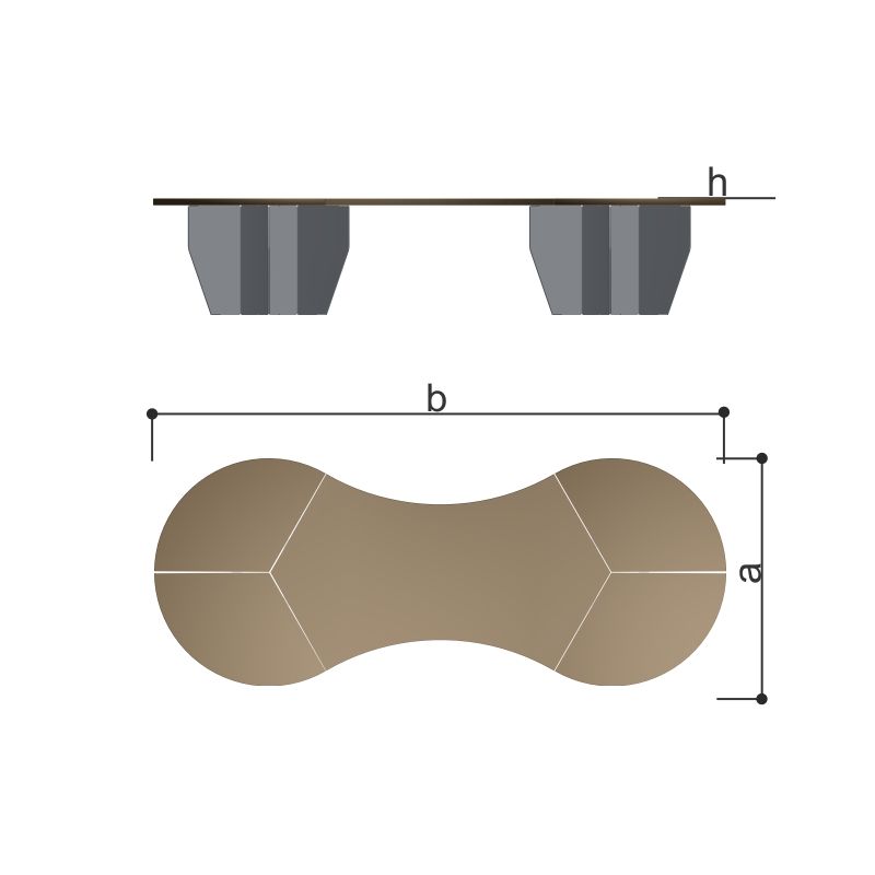 В сборе представляет собой конструкцию в виде скамьи, состоящей из двух стоек, которые соединены сегментами секторами и сегментами соединяющими.