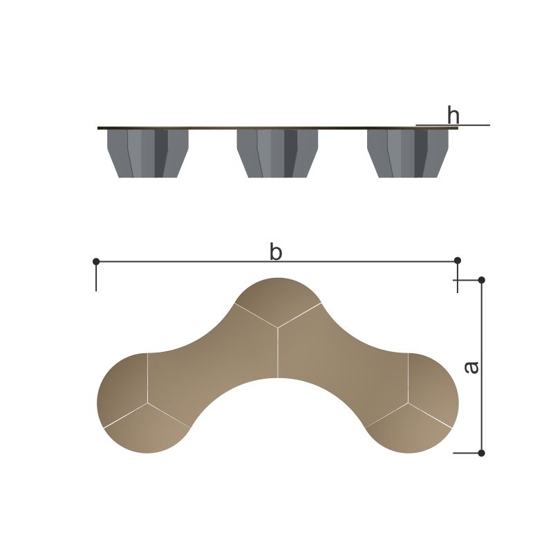 Стойка представляет собой конструкцию из шести секторов, скрепленных между собой заклепками. Сиденье состоит из сегментов из листа фанеры влагостойкой ФОФ с шероховатым покрытием, толщина фанеры 18 мм.