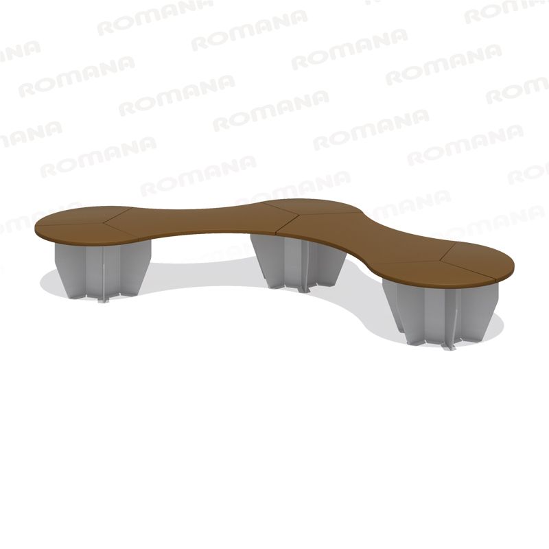 Скамья предназначена для установки на территориях игровых зон, зон отдыха. Может эксплуатироваться круглогодично во всех климатических зонах. В сборе представляет собой конструкцию в виде скамьи, состоящей из двух стоек, которые соединены сегментами секторами и сегментами соединяющими. Стойка представляет собой конструкцию из шести секторов, скрепленных между собой заклепками. Сиденье состоит из сегментов из листа фанеры влагостойкой ФОФ с шероховатым покрытием, толщина фанеры 18 мм. -