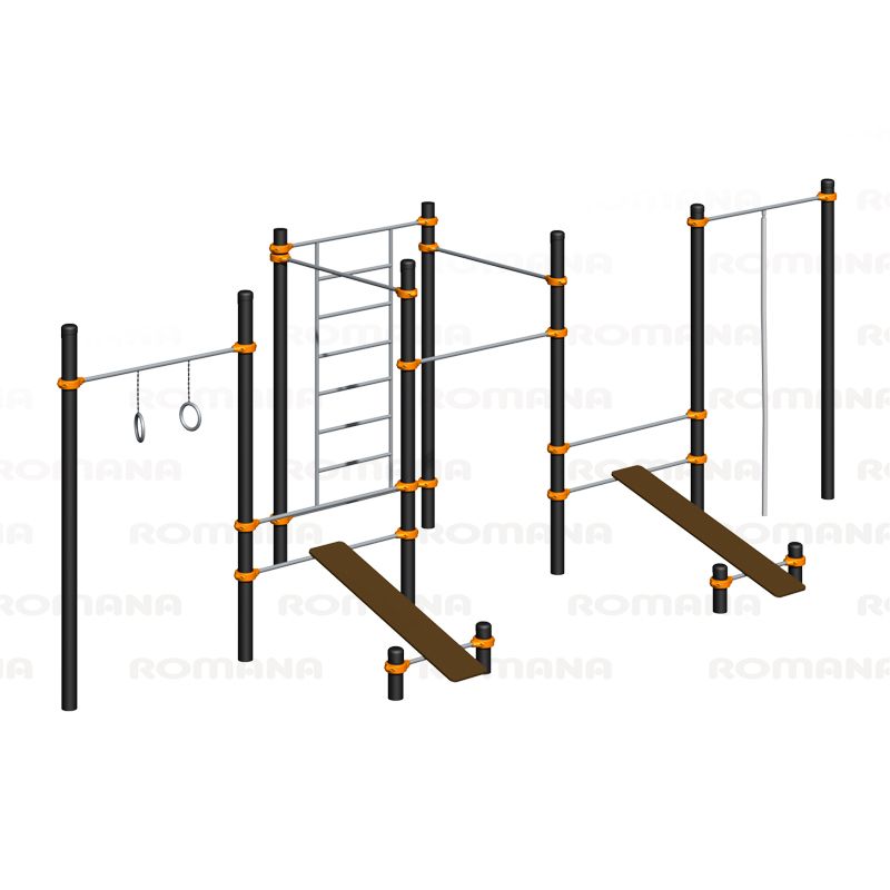Спортивное оборудование входит в комплекс «Воркаут», наряду с другими спортивными элементами устанавливается на территориях игровых зон, зон отдыха, спортивных площадках для пользователей от 14 лет. Предназначено для доступных занятий физической культурой на свежем воздухе. Круглогодичное эксплуатирование.
