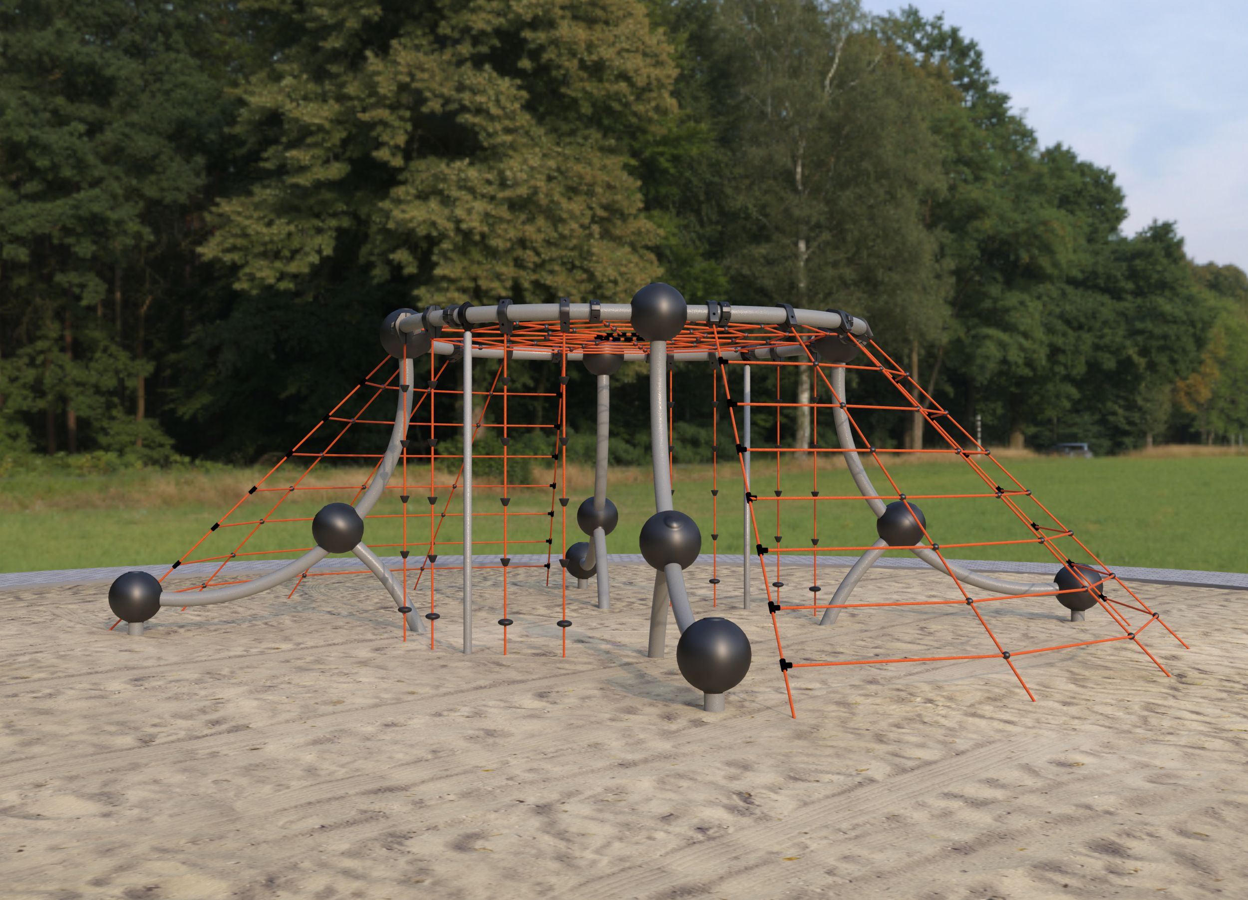 Веревочная конструкция полностью безопасна — она не имеет острых углов, все механизмы и узлы спрятаны в мягкие сферы из полиуретана. Помимо детской безопасности, это обеспечивает сохранность канатного комплекса, защиту креплений от непреднамеренного демонтажа и атмосферных явлений.