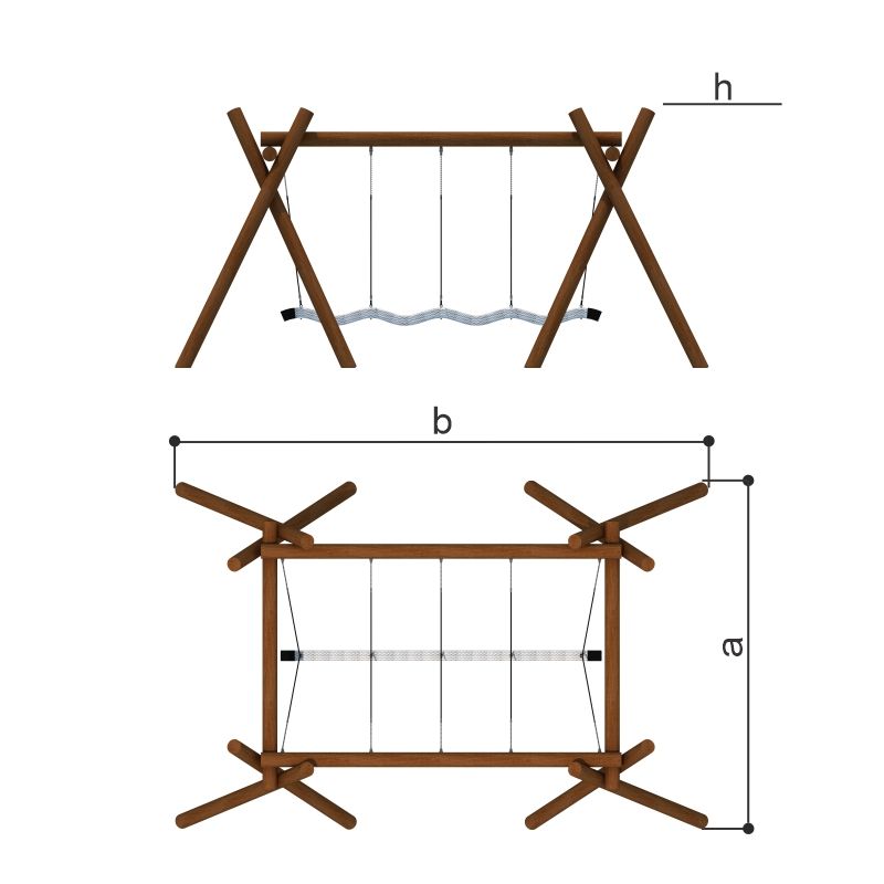 Возрастная группа, лет4-16Высота падения, мм1150Высота, ммh=3328Габаритные размеры, ммa=4597, b=6996МатериалбревноЦветкоричневый -
