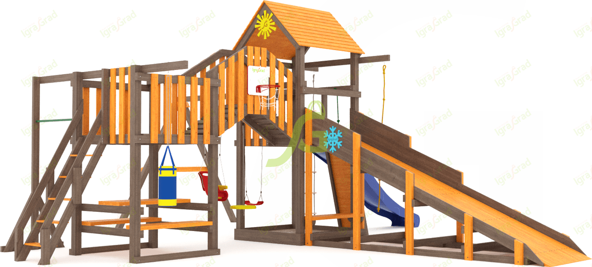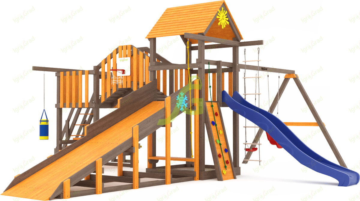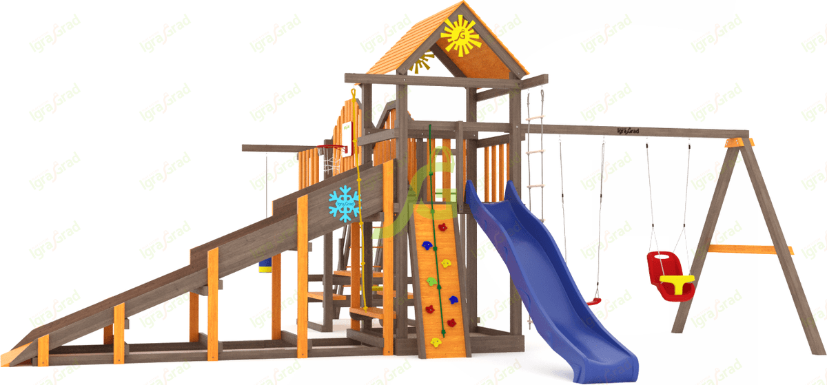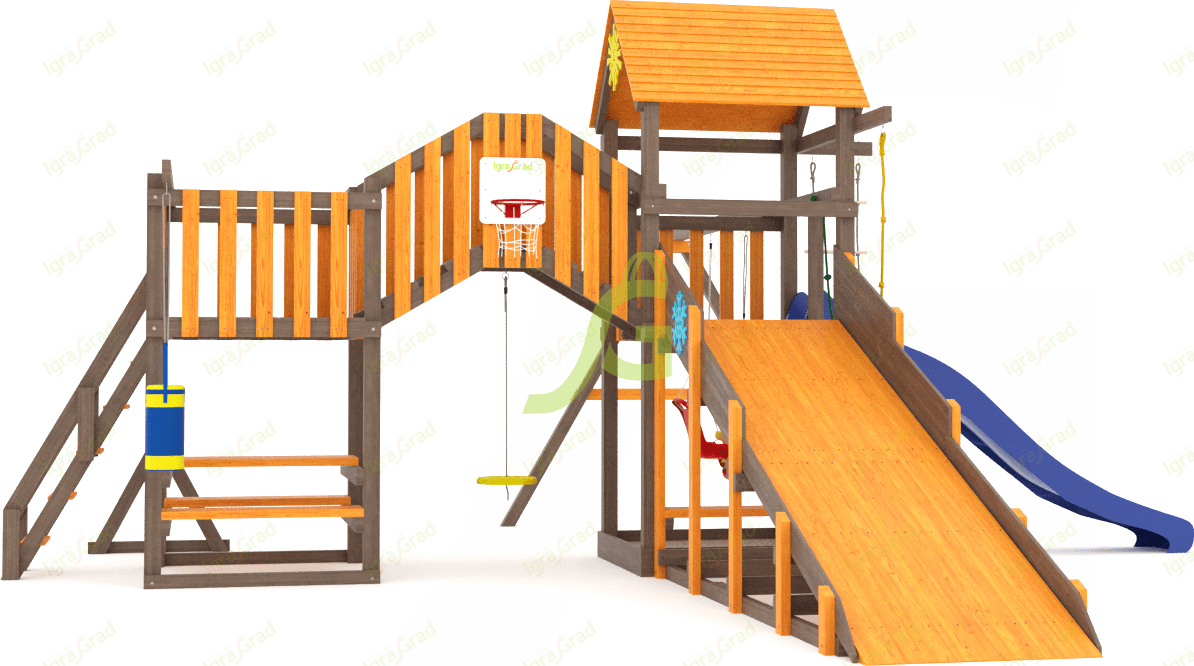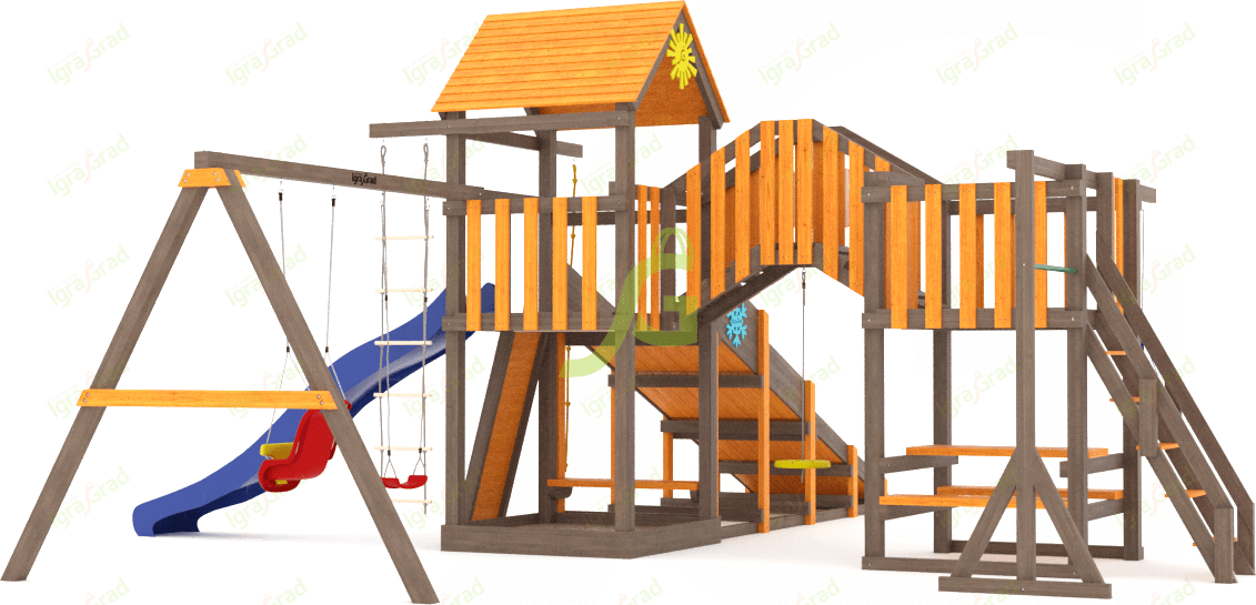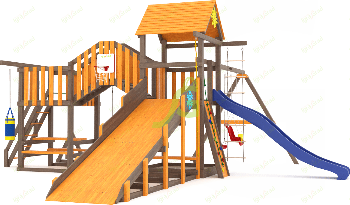 Обращаем Ваше внимание, что цвет установленной детской площадки может отличаться от представленных изображений на сайте. Специфика окраски нетоксичными пропитками допускает отклонения в цветовой гамме отгружаемых изделий вследствие различного цвета натурального природного сырья и естественных компонентов, используемых для производства площадок.
