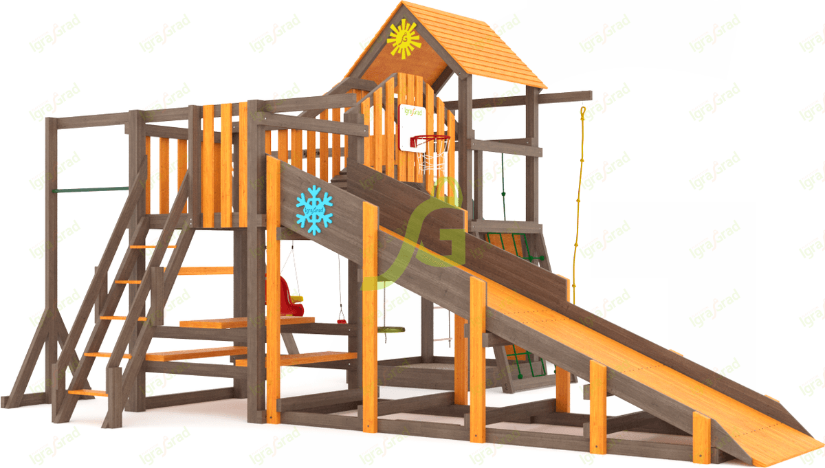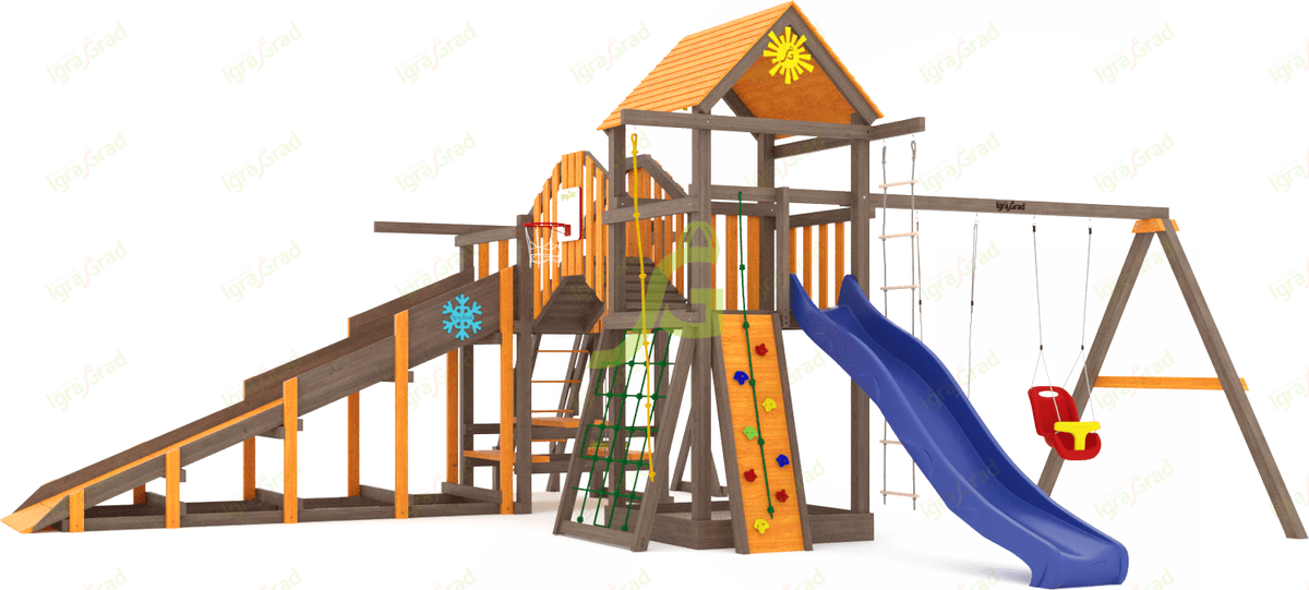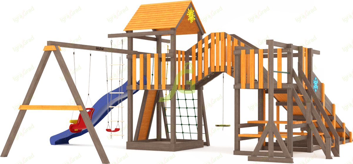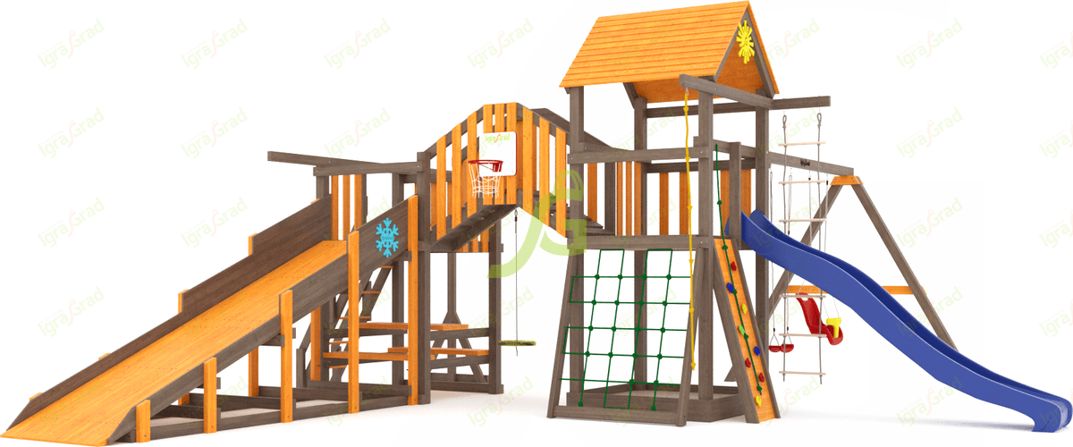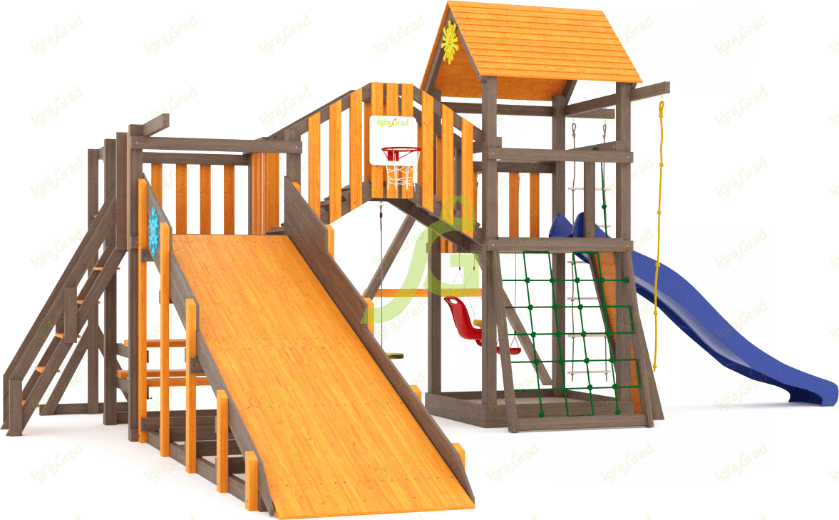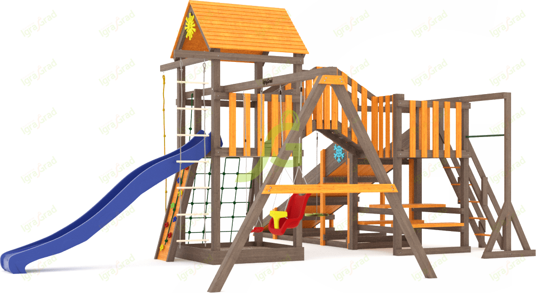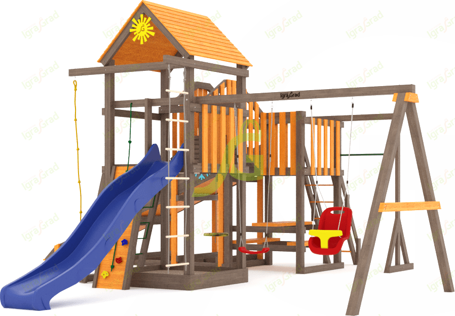 Обращаем Ваше внимание, что цвет установленной детской площадки может отличаться от представленных изображений на сайте. Специфика окраски нетоксичными пропитками допускает отклонения в цветовой гамме отгружаемых изделий вследствие различного цвета натурального природного сырья и естественных компонентов, используемых для производства площадок.