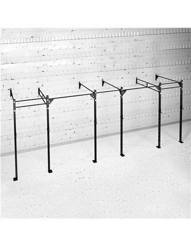 Функциональная рама – основное оборудование для спортивного зала в направлении Кроссфит. Эта цельная площадка из стандартных модульных стальных отсеков позволяет нескольким спортсменам одновременно выполнять множество силовых и комплексных упражнений в одном месте. Преимущество такого оборудования в его мобильности и видоизменяемости под потребности спортсмена. Особенность пристенной рамы состоит в том, что для своей установки она требует меньшей площади и меньшего количества стоек, так как одной из сторон крепится к прочной стене. Собранные из прочных стальных труб, рамы рассчитаны на регулярную высокую нагрузку.