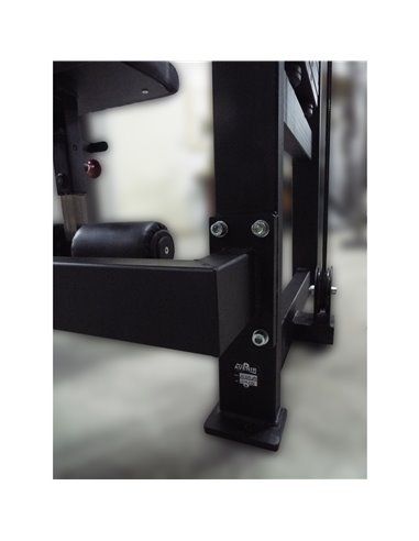 - Стальные подпятники из пластин 10 мм с отверстиями равномерно распределяют вес и дают возможность фиксировать тренажер анкерами к полу.