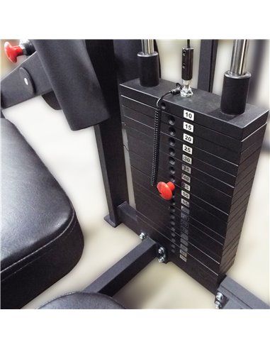 - В верхней и нижней частях рамы находятся два шкива, через которые при помощи усиленного стального троса сечением 5 мм в ПВХ-оплётке передаётся нагрузка на опорный валик для ног, покрытый поверх пенополиуретана качественной искусственной кожей. Расстояние между валиком и ложем регулируется в зависимости от длины голени тренирующегося.