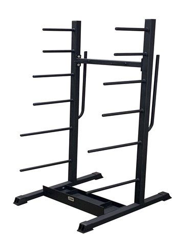Стойка для хранения боди-пампов, d-25 на 14 комплектов AV618/80 - это подставка для компактного хранения аэробных штанг в зале групповых программ. Стойка подразумевает вертикальное круговое расположение грифов боди-пампов с опорой на вертикальную стойку и складывание дисков и замков на вертикальные органайзеры по номиналам вокруг грифов.