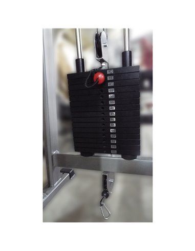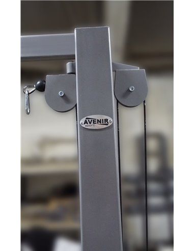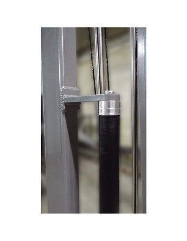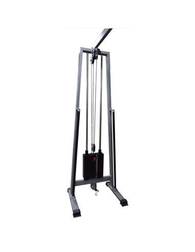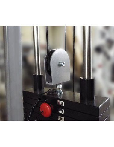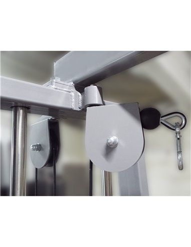 - Нагрузка с грузоблока на рабочую рукоятку, ремень или манжету передается через два вращающихся в вертикальной плоскости роликовых блока (верхний или нижний) посредством стального троса толщиной 5 мм в чёрной ПВХ-оболочке (максимальная нагрузка 800 кг).