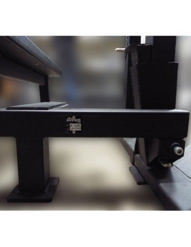 Отличительной особенностью тренажёра Стойка для пауэрлифтинга с жимовой скамьей AV131/80 является наличие специального механизма (домкратов), который позволяет изменять положение штанги в вертикальной плоскости, не снимая со штанги дисков. Механизм рассчитан на нагрузку до 600 кг.